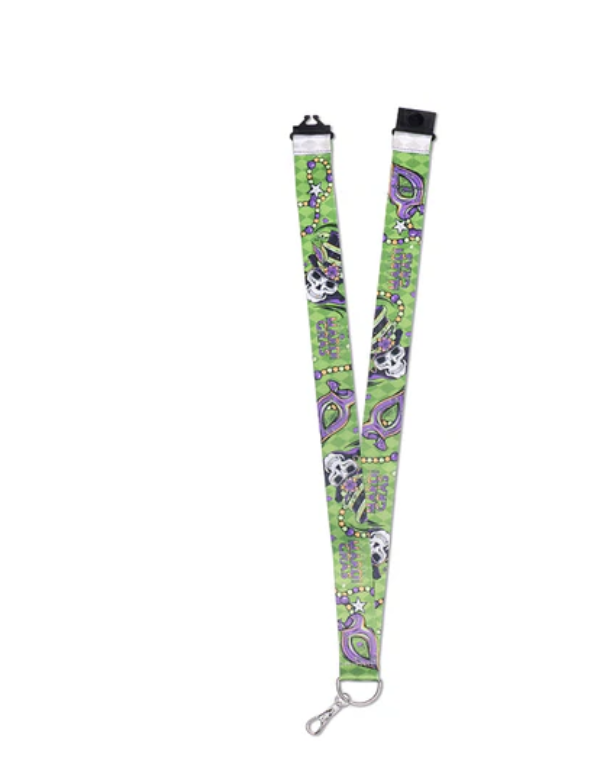 Baron Tonton takes center stage this year, and the Mardi Gras lanyard featuring the skeletal baron is a great look!