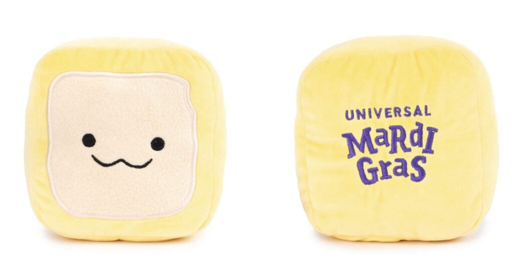 This soft, squishy cube‑style plush is a fun pick for collectors who love Universal food‑themed merch and anyone who wants a unique Mardi Gras souvenir.